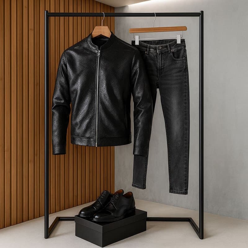 کاپشن چرم طرح پوست مار ساده مردانه مدل Yasan