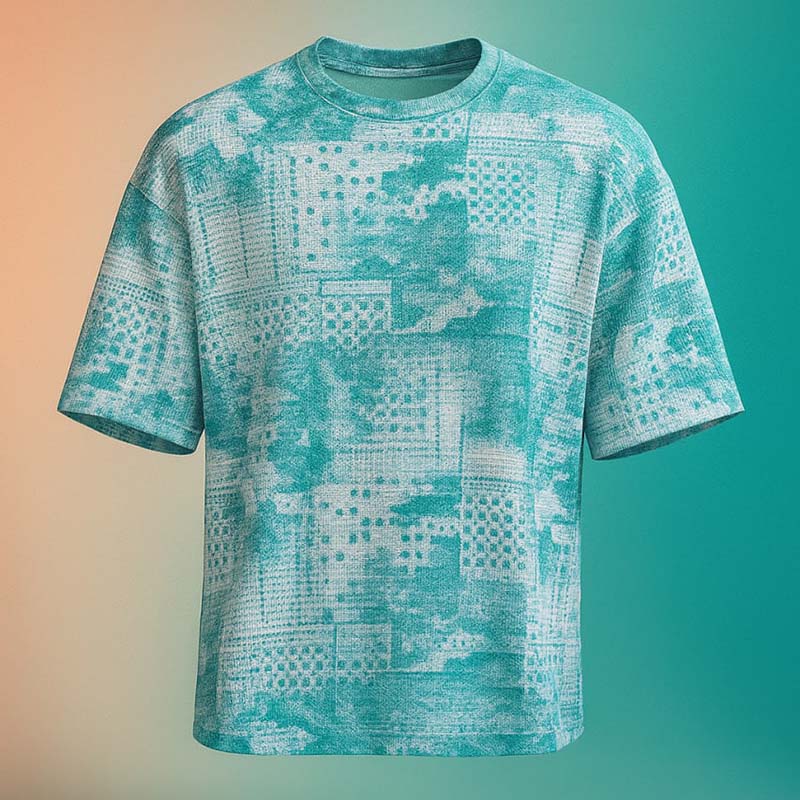 تیشرت مراکشی چاپی سبزآبی مردانه مدل Ramin